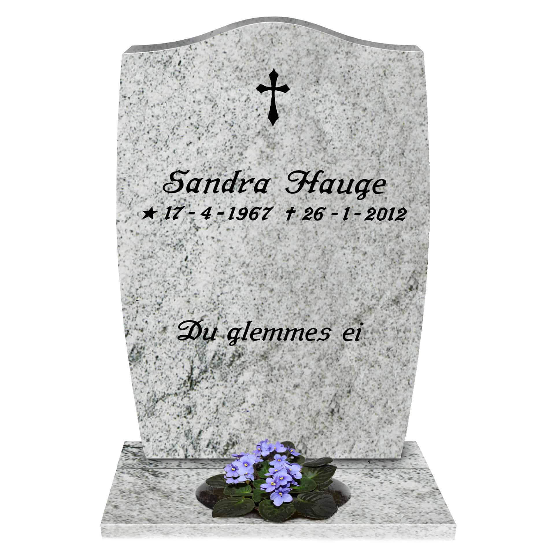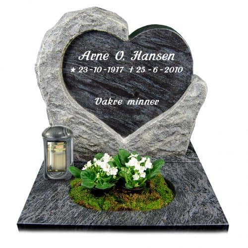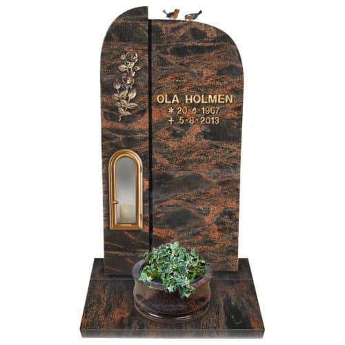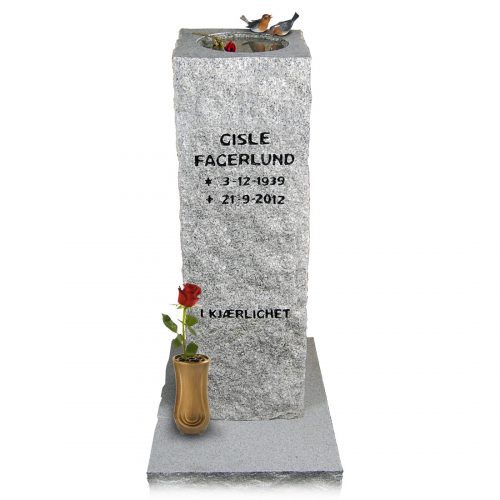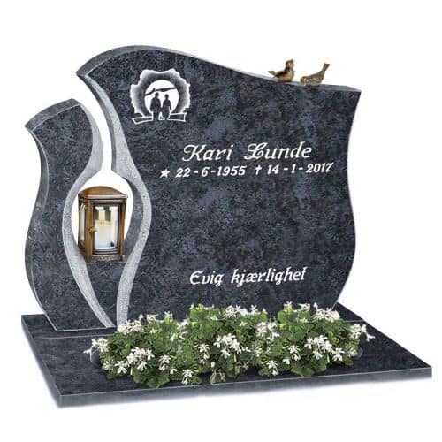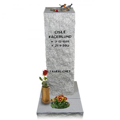 Prisen er inkludert sokkelstein, sikringsbolter, merverdiavgift, frakt og forskriftsmessig montering på kirkegården.